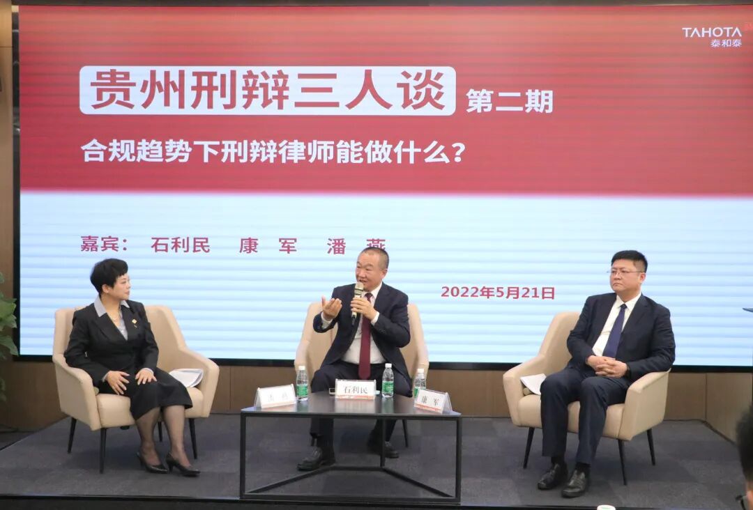 2022年3月26日,第一期《贵州刑辩三人谈》活动在贵阳市观山湖区美的财智中心B座16楼贵州泽丰律师事务所成功举办!《贵州刑辩三人谈》由贵州泽丰律师事务所、泰和泰(贵阳)律师事务所、贵达律师事务所联合