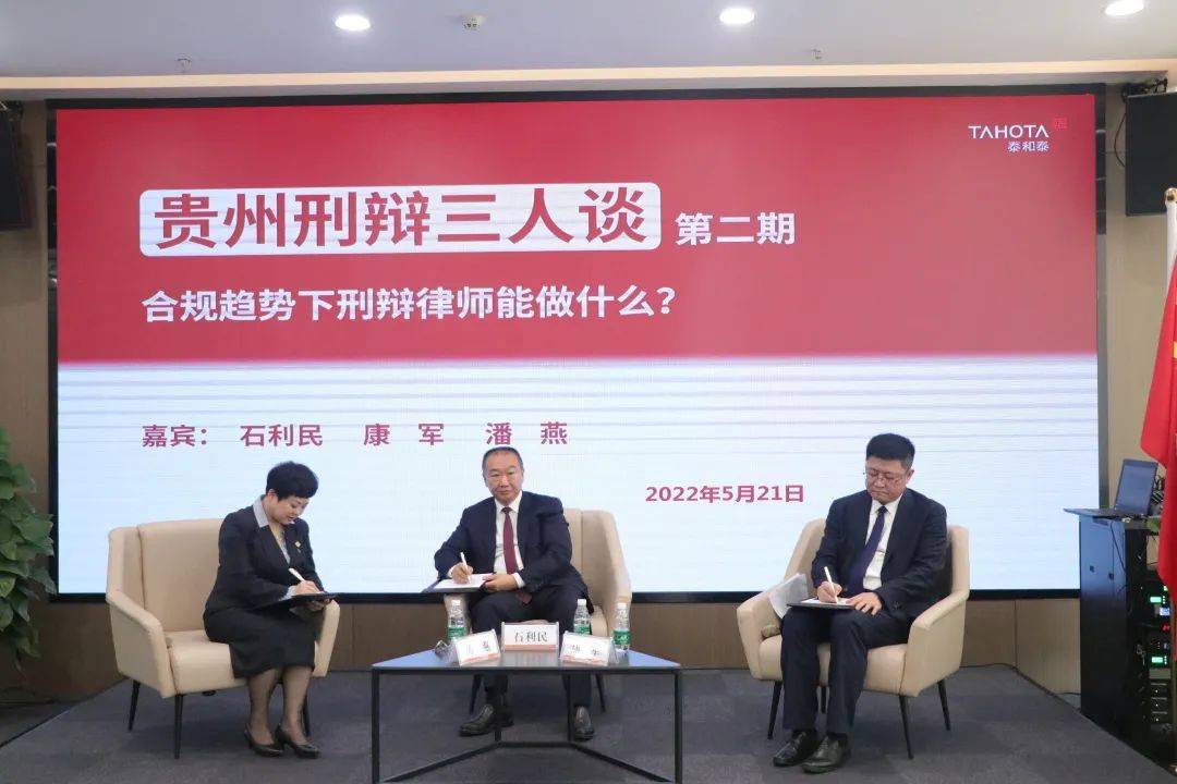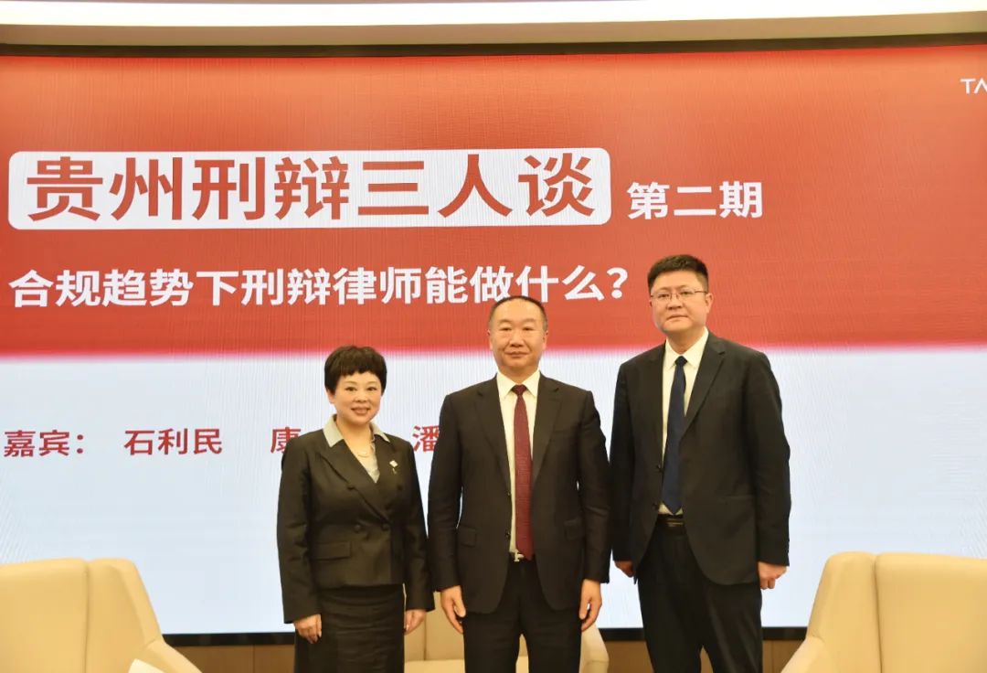 本期“贵州刑辩三人谈”的主题是“合规趋势下刑辩律师能做什么?”石利民律师、康军律师、潘燕律师分别从不同角度作了精彩的分享。