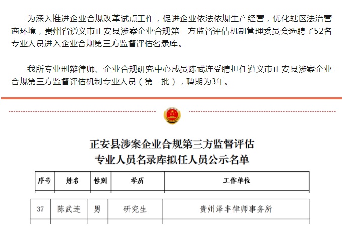 ?????贵州泽丰律师事务所主任、企业合规研究中心主任石利民,我所高级合伙人、企业合规研究中心副主任石军,我所高级合伙人、企业合规研究中心副主任申鹏,