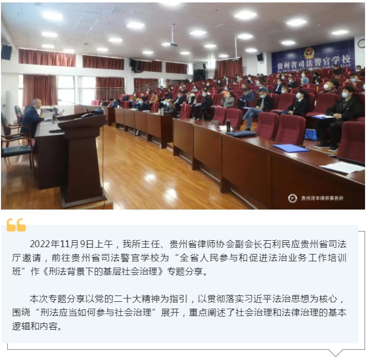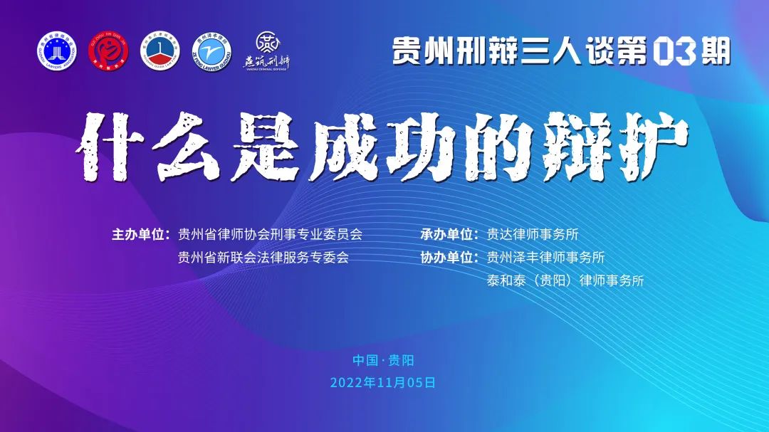 ????为提升律师在刑事辩护领域的职业素养和办案质量,传授办案技巧、追踪热点话题、解答实务难题、培养法治精神、提升理论认知,2022年11月5日下午,由贵州省律