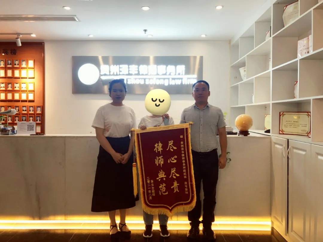 2021年9月7日下午,当事人特委托其母亲刘女士专程将一面隽秀着“人民的好律师弱者的保护神”的锦旗送至贵州泽丰律师事务所,表达对我所刘峥、梁忠律师的真诚谢意。???&nb