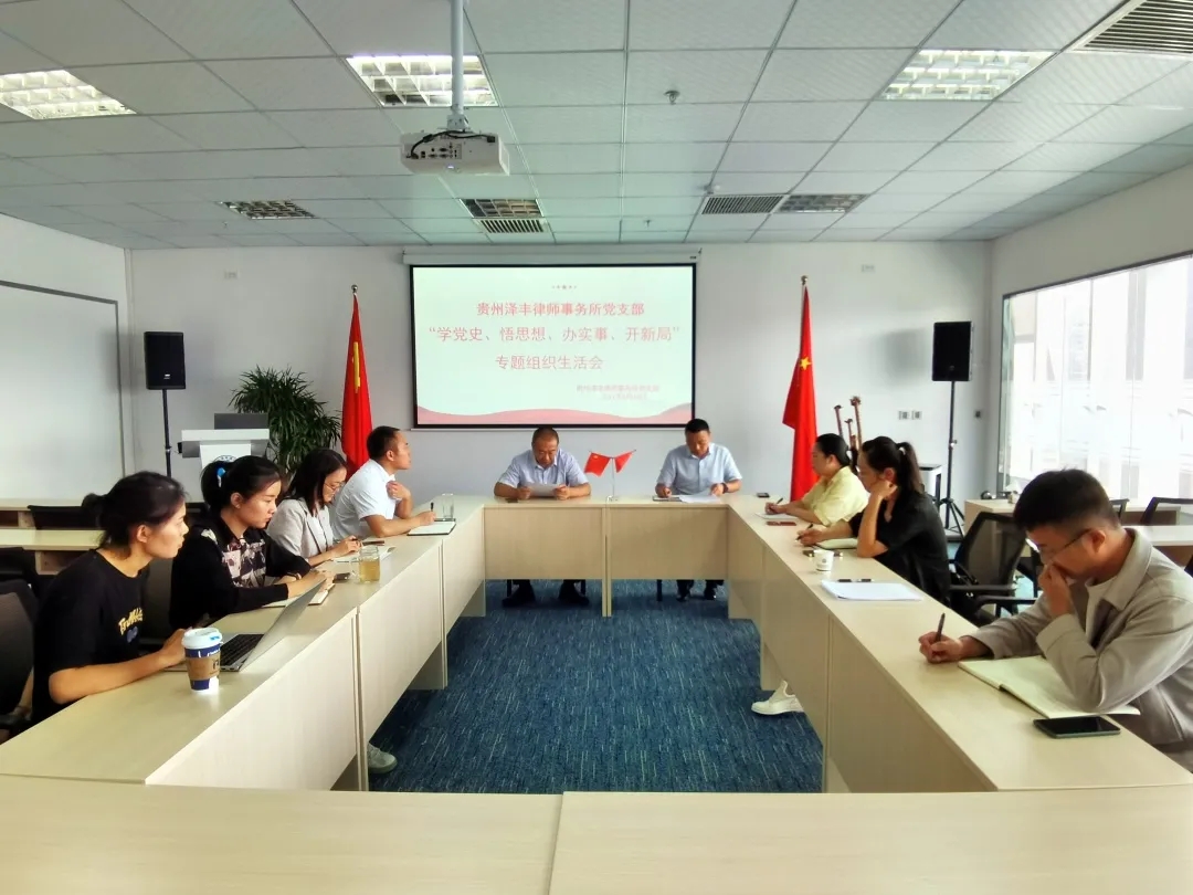 根据贵阳市律师行业党委下发的《关于认真做好党史学习教育专题组织生活会工作的通知》要求,2021年8月18日下午,贵州泽丰律师事务所党支部召开“学党史、悟思想、办实事、开新局”专题组织生活会,会议由支部