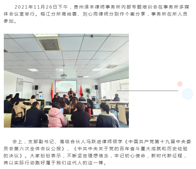 泽丰资讯|贵州泽丰律师事务所举办11月业务培训Claier-L?贵州泽丰律师事务所?2021-11-2812:02