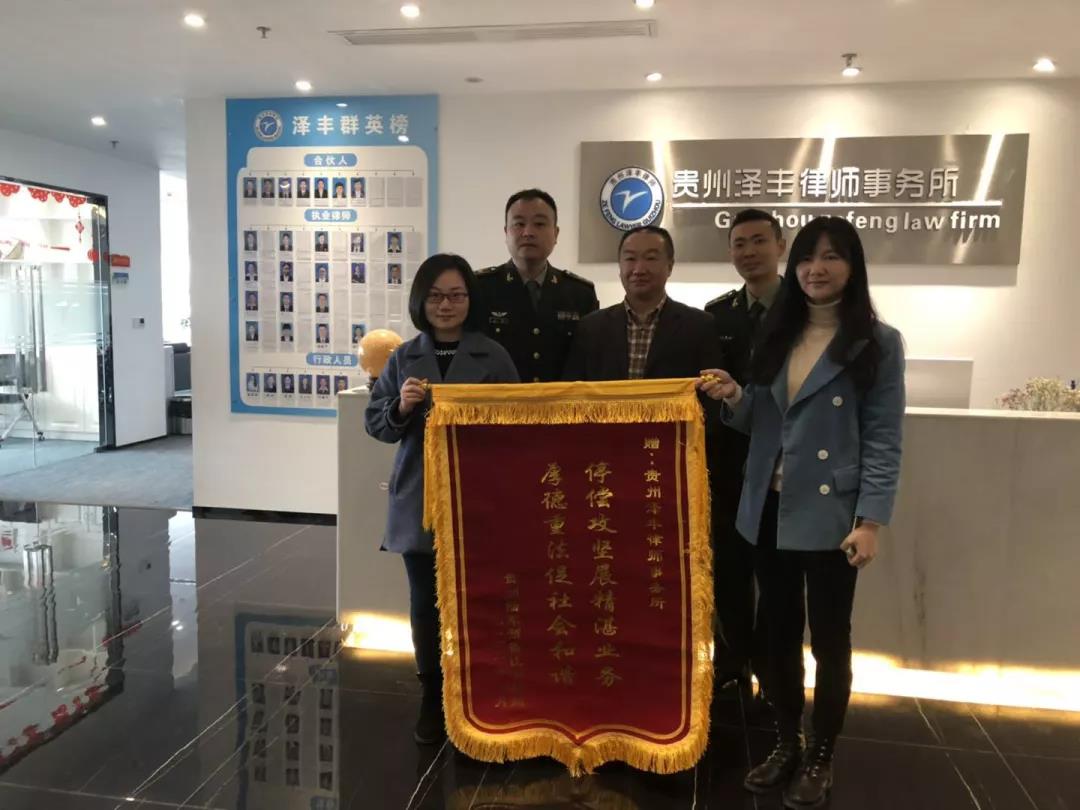 ??2019年3月25日上午,中国人民解放军贵州陆军预备役步兵师将写有“停偿攻坚展精湛业务,厚德重法促社会和谐”的锦旗和一封感谢信送到我所,表达了对我所为该师提供“停偿”法律服务的